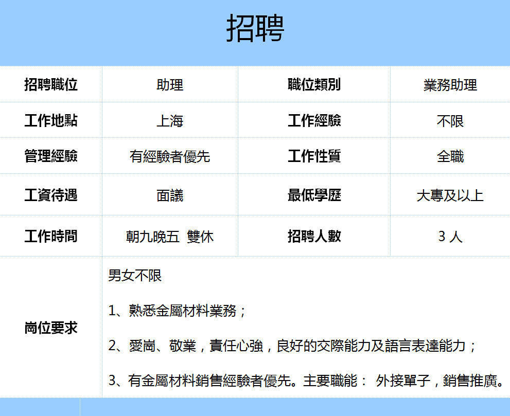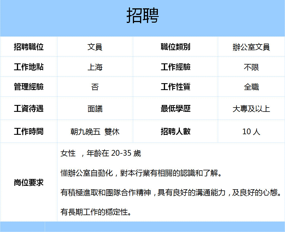 的用人標準是: